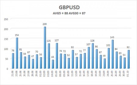 Валютная пара GBP/USD в течение среды продолжала восходящее движение, которое началось несколько дней назад. У евровалюты в среду был свой отчет по инфляции, которые ухудшил ее позиции по рынку, а у британского фунта такого отчета не было, поэтому он преспокойно продолжил рост. В целом, британский фунт продолжает расти, а доллар – падать, что лучше всего видно на дневном ТФ. Более 2-х месяцев длится «простой», но за это время фунт в моменте терял не более 400 пунктов. По сути, нисходящую коррекцию можно считать завершенной еще с 1 августа. Таким образом, может быть, фунт стерлингов и не растет, как в первом полугодии, но он и не теряет свои позиции, «нажитые непосильным трудом». Это шутка. Фунт стерлингов ничего не сделал для того, чтобы в 2025 году показать рост на 15 центов. Это доллар упал на 15 центов. Если бы не тотально-провальный фундаментальный фон в США, никогда в жизни мы бы не увидели такого роста британской валюты за полгода, которая на пару с евровалюту в последние 17 лет только падала. Очевидно всем, что с таким состоянием британской экономики фунт явно не может пользоваться высоким спросом. А состояние экономики Туманного Альбиона оставляет желать лучшего еще с 2016 года. Что касается американского шатдауна, то это новый интересный «мини-сериал от HBO». Скорее всего, шатдаун не будет длиться несколько месяцев или более, но, как мы уже говорили, текущая остановка работы правительства и государственных учреждений имеет совершенно особый смысл. Неважно, по каким именно вопросам не могут в очередной раз договориться демократы и Трамп. Важно, что демократы чуть ли не впервые за время второй каденции Трампа могут ему «насолить». Напомним, что большинство своих решений Трамп принял самостоятельно, потому что вся Республиканская партия делает только то, что скажет президент. Так как республиканцы имеют большинство в обеих палатах Конгресса, то им даже не нужно добиваться одобрения демократов. Демократы сейчас являются полностью отрезанными от управления страной. Но наступил момент согласования и принятия бюджета на следующий финансовый год и... у республиканцев не хватило голосов в Сенате США, чтобы протолкнуть свой вариант «без шума и пыли». Все потому, что для принятия бюджета требуется не стандартные 50% голосов + 1, а 60%. А в Сенате США заседает всего лишь 53 республиканца. Этого хватает для принятия большей части любых законопроектов, но для бюджета – нет. Поэтому демократы сейчас имеют чуть ли ни первую возможность в 2025 году напомнить о себе. Более того, в следующем году состоятся парламентские довыборы, в ходе которых республиканцы могут потерять Нижнюю палату. Мы считаем, что это произойдет в любом случае, так как от многих решений Трампа американцы стали жить объективно хуже, чем ранее. А «Великое будущее», обещанное Трампом, что-то никак не наступает. Поэтому демократам сейчас нужно показать себя перед американским народом, и они будут стоять до последнего, настаивая на защите прав социально-незащищенных граждан США. Средняя волатильность пары GBP/USD за последние 5 торговых дней составляет 88 пунктов. Для пары фунт/доллар это значение является «средним». В четверг, 2 октября, таким образом, мы ожидаем движения внутри диапазона, ограниченного уровнями 1,3392 и 1,3568. Старший канал линейной регрессии направлен вверх, что указывает на однозначн