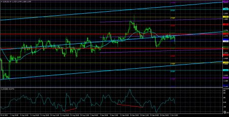 Валютная пара EUR/USD в течение четверга продолжала торговаться очень спокойно, без рывков и сильной волатильности. В очередной раз первая неделя нового месяца становится до жути скучной. Напомним, что каждая первая неделя месяца – это время публикации важной макроэкономической статистики в США. Однако в последние месяцы, несмотря на действительно интересные и резонансные отчеты, в частности, по рынку труда, мы все чаще и чаще наблюдаем крайне низкую заинтересованность рынка в немедленной отработке этой информации. Вот и текущая неделя выдается на поверку достаточно скучной, хотя ее события «рядовыми» не назовешь. Начать следует с отчета ADP США по изменению количества работников в частном секторе, который оказался «ниже плинтуса» в прямом смысле этого слова. Если «плинтусом» считать нулевой уровень. Ранее рынок труда США демонстрировал низкие значения, а теперь – отрицательные. Также на этой неделе в Америке начался очередной «шатдаун». В реальности, они случаются в США не так уж часто, но мы считаем, что даже один раз в 5-6 лет – это не мало. Самое интересное, что в последние годы «шатдауны» возникают лишь тогда, когда Трамп – президент США. Первый «шатдаун» стал самым длительным в истории США, и нынешний «шатдаун» может стать очень болезненным для страны. Напомним, что «шатдаун» – это не просто «отпуск за свой счет». Многие государственные учреждения прекращают свою работу, а государственные учреждения – это не только про государство. Многие частные компании и юридические лица так или иначе завязаны в своей деятельности с государственными структурами. Помимо этого, «в отпуск» одномоментно может уйти до 1 млн государственных чиновников, а некоторые из них – даже быть уволенными. Соответственно, до 1 млн человек перестанет ходить на работу на неопределенный срок, а также не будут получать зарплату за весь этот период времени. Очевидно, что их расходы существенно снизятся, что отразится на всей американской экономике, темпах ее роста и других макроэкономических показателях. Таким образом, тот факт, что доллар на этой неделе падает очень слабо, выглядит очень удивительно. Даже в последние несколько недель, когда американская валюта чувствует себя более или менее неплохо, оснований для мощного падения у нее предостаточно. Техническая картина на 4-часовом ТФ – не самая лучшая. В последние несколько дней пара не может ни закрепиться выше мувинга, ни отскочить от мувинга. Рынок находится в замешательстве, потому что пятничные Нонфармы и уровень безработицы, скорее всего, не будут опубликованы на этот раз. Тогда выводы о состоянии рынка труда можно будет делать только по отчету ADP, и ожидать при этом еще большего ухудшения ситуации из-за 1 млн американских госслужащих, которые уйдут в бессрочный отпуск или же попросту будут уволены. Таким образом, с каждым днем фундаментальный фон для доллара становится только хуже. Средняя волатильность валютной пары EUR/USD за последние 5 торговых дней по состоянию на 3 октября составляет 58 пунктов и характеризуется, как «средняя». Мы ожидаем движение пары между уровнями 1,1649 и 1,1765 в пятницу. Старший канал линейной регрессии направлен вверх, что по-прежнему указывает на восходящую тенденцию. Индикатор CCI заходил в область перекупленности, что и спровоцировало новый виток нисходящей коррекции. Ближ