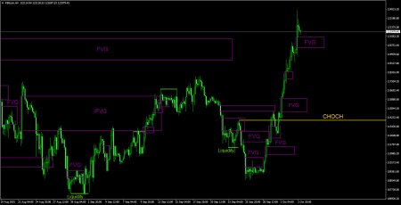 CHOCH – слом трендовой структуры. Liquidity – Ликвидность, Stop Loss трейдеров, которые маркет-мейкеры используют для набора своих позиций. FVG – Область ценовой неэффективности. Цена очень быстро проходит такие области, что указывает на полное отсутствие одной из сторон на рынке. В последствии цена имеет свойство возвращаться и получать реакцию от таких областей. IFVG – Инвертированная область ценовой неэффективности. После возврата к такой области, цена не получает от нее реакцию, а импульсно пробивает, а затем тестирует ее с другой стороны. OB – Ордер-блок. Свеча, на которой маркет-мейкер открывал позицию с целью забора ликвидности для формирования собственной позиции в противоположном направлении.Материал предоставлен компанией InstaForex - www.instaforex.comНовость предоставлена компанией