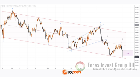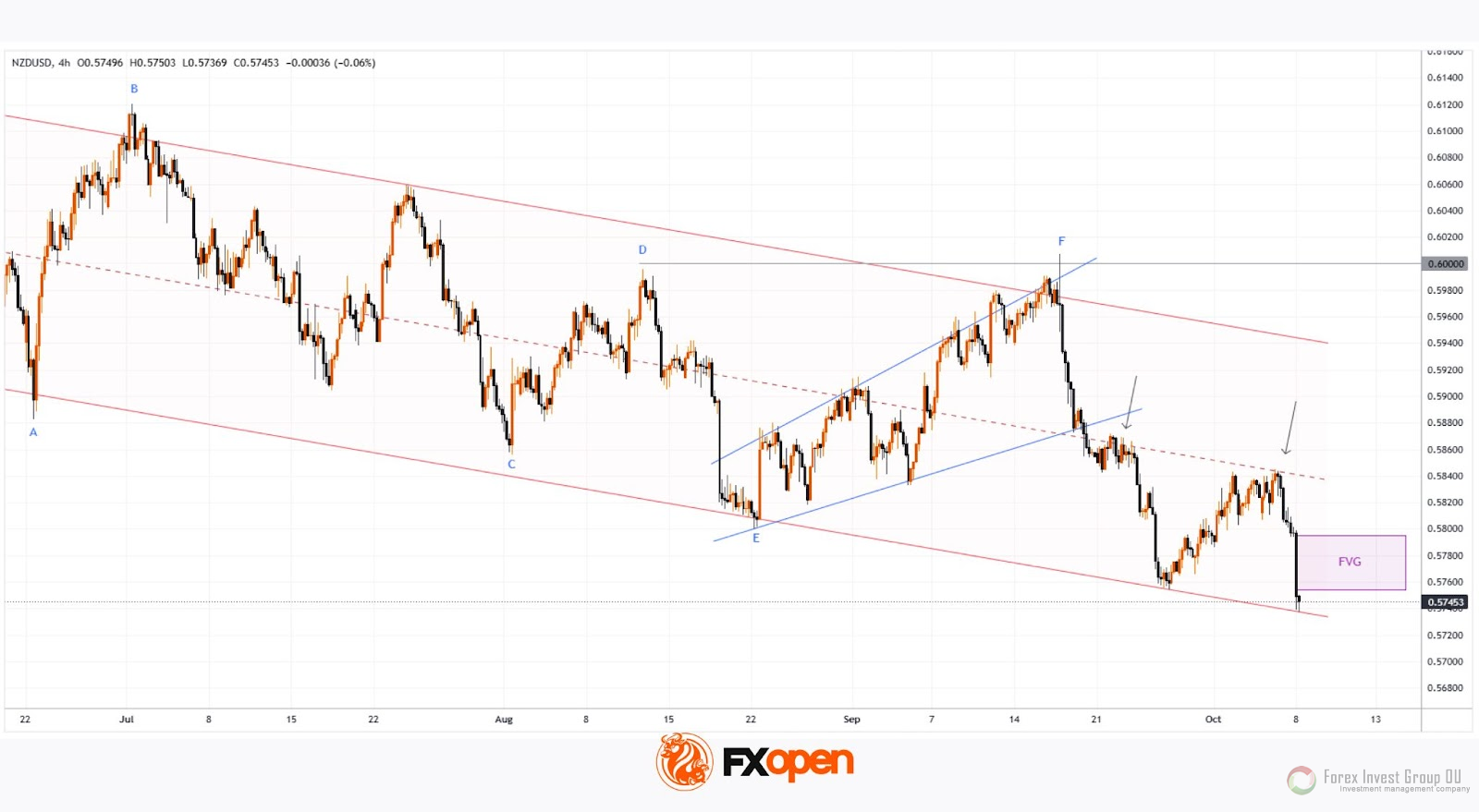 Колебания курса “киви” во второй половине 2025 формируют на графике нисходящий канал, причем обратите внимание на то, что вершина F: