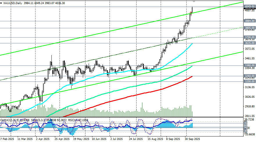 Рынок ожидает изменений в стратегии Федеральной резервной системы и готовится к возможным колебаниям курсов валют, акций и облигаций в ближайшее время. Однако золото остается привлекательным инструментом хеджирования рисков в периоды повышенной неопределённости, привлекая инвесторов, стремящихся защитить свои капиталы от возможных колебаний рынков, предположили мы в нашем сегодняшнем фундаментальном анализе и обзоре «XAU/USD: доллар vs. золото». Общий тренд остается восходящим, а XAU/USD торгуется выше ключевых уровней поддержки и в зоне устойчивого бычьего рынка, среднесрочного – выше 3260.00 (ЕМА200 на дневном графике), долгосрочного – выше 2475.00 (ЕМА200 на недельном графике). Общие перспективы актива остаются положительными, несмотря на временные коррекции. Покупатели воспринимают любую коррекцию как хорошую возможность приобрести металл дешевле. С этой точки зрения снижение в зону поддержки вокруг отметок 3884.00 (ЕМА200 на 1-часовом графике), 3800.00 могло бы стать отличной возможностью для наращивания длинных позиций. Более глубокая коррекция в рамках краткосрочного медвежьего тренда – снижение к «круглой» отметке и краткосрочному уровню поддержки 3700.00 (ЕМА200 на 4-часовом графике). Однако, учитывая сильный бычий импульс цены, подогреваемый фундаментальными факторами, такое снижение может вообще не состояться, если только ФРС не объявит о переходе к более жесткой политике в отношении процентных ставок. Это, как следует из последних сообщений СМИ и событий, маловероятно. Поэтому более перспективным планом выглядит пробой сегодняшнего и рекордного максимума 4049.00 и дальнейший рост с минимальными откатами. В альтернативном сценарии и если доллар начнет более активно укрепляться при поддержке ФРС, то после пробоя цены открытия сегодняшнего дня 3982.00 и ЕМА200 на 15-минутном графике цена все же может продолжить снижаться к краткосрочному уровню поддержки 3884.00 (ЕМА200 на 1-часовом графике). Пробой локального уровня поддержки 3805.00 может спровоцировать продолжение коррекции к зоне поддержки вокруг уровней 3700.00 (ЕМА200 на 4-часовом графике), 3635.00 (ЕМА50 на дневном графике), вблизи которых, учитывая бычий тренд пары, можно будет расположить новые отложенные ордера на покупку, рассчитывая на отбой и возобновление роста. Лишь пробой ключевых уровней поддержки 3260.00 (ЕМА200 на дневном графике), 3200.00 (ЕМА50 на недельном графике) будет означать слом среднесрочного бычьего тренда, что сделает преимущественными короткие позиции в среднесрочном периоде. Пока в преимуществе длинные позиции, логичнее искать возможности для новых покупок. В целом, общий тренд XAU/USD остается восходящим. открыть торговый счет + зарегистрироваться в системе копирования сигналов + инвестировать в ПАММ-системеМатериал предоставлен компанией InstaForex - www.instaforex.com