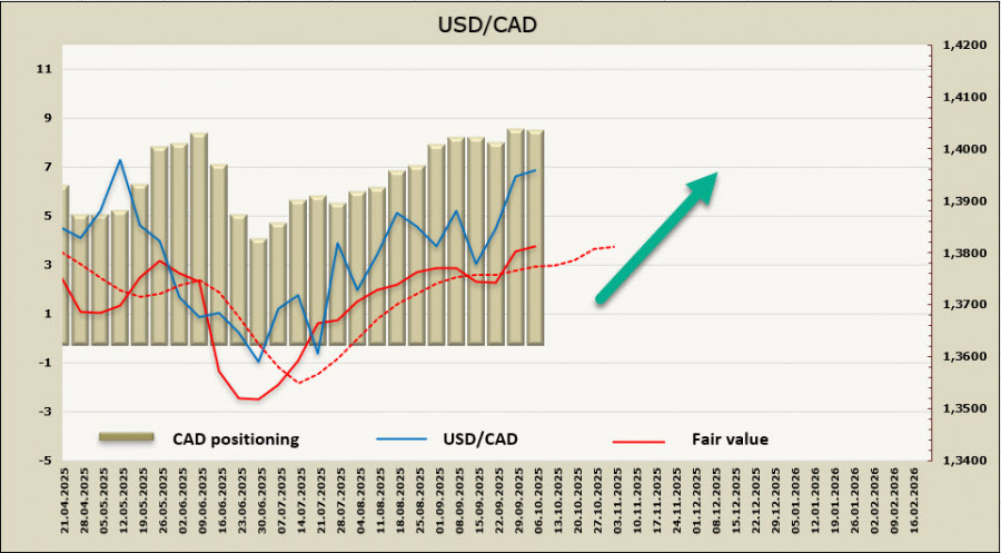 Ситуация для Банка Канады все еще не выглядит позитивной. Ставка снижена с пика 5,00% до 2.75%, это привело к оживлению в экономике, росту потребительских расходов, но этого явно мало, чтобы экономика начала уверенный рост. Сегодня Премьер-министр Марк Карни отправляется с визитом в Вашингтон всё с той же актуальной повесткой, то есть с вариантами дальнейших действий в сфере взаимной торговли США и Канады. Удастся ли ему вернуться с позитивными новостями, неясно, пока же нужно исходить из того, что даже текущие 2.75% ставки BoC недостаточны, чтобы обеспечить экономический рост. Ближайшее заседание Банка Канады состоится 29 октября, на котором, как ожидается, ставка вновь будет снижена. На пятницу запланирован выход отчета по рынку труда, ожидания негативные, прогнозируется рост безработицы до 7.2% и сокращение 50 тыс. рабочих мест. Всё указывает на то, что ставку надо снижать и далее, и единственное, что может помешать, это угроза роста инфляции. Пока признаков роста цен немного, но нужно учесть, что рост инфляции ожидается в США, Великобритании, Австралии и Новой Зеландии, останется ли Канада за пределами этой тенденции, покажет уже ближайший отчет 21 октября. В целом исходим из того, что экономика Канады еще слишком слаба, чтобы рассчитывать на то, что Банк Канады завершит в октябре снижение ставки, а раз так, то давление на луни будет усиливаться даже с учетом того, что ставку будет снижать и ФРС США. Расчетная цена удерживается выше долгосрочной средней.