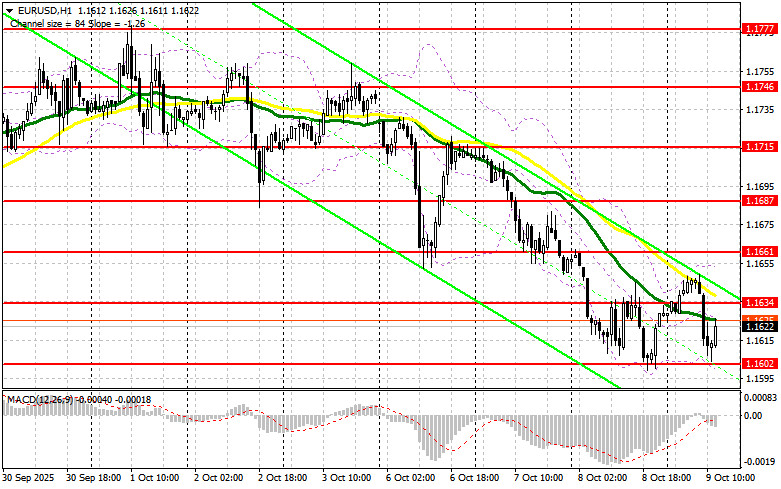 В своем утреннем прогнозе я обращал внимание на уровень 1.1602 и планировал от него принимать решения по входу в рынок. Давайте посмотрим на 5-минутный график и разберемся с тем, что там произошло. Снижение и формирование ложного пробоя в районе 1.1602 привели к точке входа на покупку евро, что вылилось в рост пары на 20 пунктов. На вторую половину дня техническая картина была пересмотрена.Для открытия длинных позиций по EURUSD требуется:Учитывая какое давление сейчас оказывается на евро, не помогли даже хорошие данные по росту положительного сальдо баланса внешней торговли Германии. Учитывая шатдаун в США и отсутствие новой фундаментальной статистики, конечно же во второй половине дня акцент будет смещен на выступления представителей ФРС, которые все больше и больше расходятся во взглядах, что делать дальше с процентными ставками. Ожидаются выступления председателя совета управляющих ФРС Джерома Пауэлла, и членов FOMC в лице Мишель Боуман, Майкла С. Барра и Мишель Боуман. В случае дальнейшего падения евро лишь формирование ложного пробоя в районе 1.1602 по аналогии с тем, что я разбирал выше, будет поводом для открытия новых длинных позиций в расчете на обновление сопротивления 1.1634. Прорыв и обратный тест этого диапазона станут подтверждением правильной точки вход с выходом к области 1.1661. Самой дальней целью будет уровень 1.1687, где буду фиксировать прибыль. При варианте дальнейшего снижения EUR/USD и отсутствия активности в районе 1.1602, что более вероятно, пара продолжит падение. Медведи в таком случае сумеют дотянуться до 1.1576. Лишь после формирования там ложного пробоя собираюсь действовать на покупку евро. Открывать длинные позиции сразу на отскок планирую от 1.1530 с целью восходящей коррекции в 30-35 пунктов внутри дня.Для открытия коротких позиций по EURUSD требуется: Продавцы проявили себя, но пробиться ниже недельного минимума пока не удалось. В случае роста пары после выступления представителей ФРС действовать собираюсь только в районе ближайшего сопротивления 1.1634. Лишь формирование там ложного пробоя будет для меня поводом для коротких позиций с целью снижения к уровню 1.1602. Прорыв и закрепление ниже этого диапазона станут подходящим вариантом на продажу уже с движением в район 1.1576. Самой дальней целью выступит область 1.1530, где буду фиксировать прибыль. В случае движения вверх EUR/USD во второй половине дня, а также отсутствия активных действий медведей в районе 1.1634, где проходят и средние скользящие, играющие на стороне продавцов, покупатели получат шанс на более крупный рывок, что откроет дорогу в район следующего сопротивления 1.1661. Продавать там буду только после неудачного закрепления. Открывать короткие позиции сразу на отскок я планирую от 1.1687 с целью нисходящей коррекции в 30-35 пунктов.Рекомендую ознакомиться:В COT-отчете (Commitment of Traders) за 23 сентября наблюдался рост коротких позиций и сокращение длинных. Ожидания дальнейшего снижения Федеральной резервной системой процентных ставкам продолжает оказывать давление на американский доллар. Однако покупателей евро также не становится больше, так как политические проблемы во Франции и риски нового витка роста инфляции заставляют ЕЦБ действовать куда более осторожно, тормозя темпы экономического роста. В COT-отчете указано, что длинные некоммерческие позиции сократились на 789 до уров