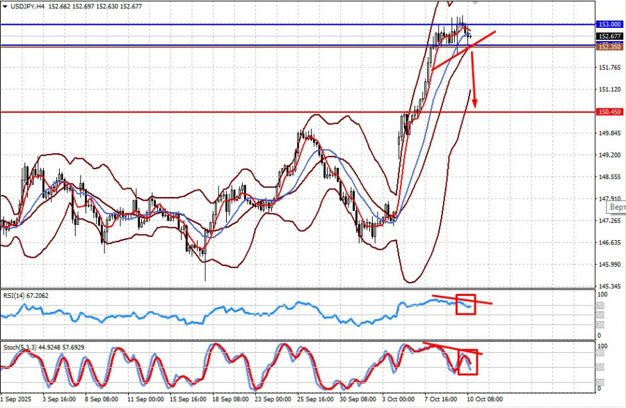 USD/JPY Пара нашла сопротивление на уровне 153.00, Неспособность его преодолеть может привести к ее коррекционному падению к 150.45. Уровнем для ее продажи может служить отметка 152.35 после снижения цены ниже поддержки 152.40. GOLD Цена на золото повышается после локальной коррекции вниз. Сохранение ряда негативных факторов геополитического характера будет поддерживать котировки золота. Уровнем для его покупки может служить отметка 3994.00.Материал предоставлен компанией InstaForex - www.instaforex.com
