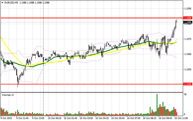 В своем утреннем прогнозе я обращал внимание на уровень 1.1589 и планировал от него принимать решения по входу в рынок. Давайте посмотрим на 5-минутный график и разберемся с тем, что там произошло. Рост произошел, но до теста этого уровня не хватило буквально пары пунктов, так что я остался без сделок. На вторую половину дня техническая картина не пересматривалась.Для открытия длинных позиций по EURUSD требуется:Как и ожидалось, на фоне отсутствия важной статистики по еврозоне евро продемонстрировал небольшое восстановление в первой половине дня. Но спрос остается достаточно слабый, так что медвежий рынок может вернуться в любой момент. В ходе американской сессии нас ждут цифры по индексу настроения потребителей от Университета Мичигана и инфляционные ожидания от Университета Мичигана. Также состоятся выступления членов FOMC Остан Д. Гулсби и Альберто Мусалема. Учитывая, что в последнее время представители ФРС занимают более осторожную позицию в отношении будущего снижения ставок, доллар может вернуться к росту. В случае дальнейшего падения евро лишь формирование ложного пробоя в районе 1.1545 будет поводом для открытия новых длинных позиций в расчете на обновление сопротивления 1.1589, тест которого состоится в ближайшее время. Прорыв и обратный тест этого диапазона станут подтверждением правильной точки вход с выходом к области 1.1627. Самой дальней целью будет уровень 1.1661, где буду фиксировать прибыль. При варианте дальнейшего снижения EUR/USD и отсутствия активности в районе 1.1545 пара продолжит падение. Медведи в таком случае сумеют дотянуться до 1.1520. Лишь после формирования там ложного пробоя собираюсь действовать на покупку евро. Открывать длинные позиции сразу на отскок планирую от 1.1489 с целью восходящей коррекции в 30-35 пунктов внутри дня.Для открытия коротких позиций по EURUSD требуется: Продавцы пока заняли выжидательную позицию, рассчитывая получить новую порцию информации относительно инфляции и мнений представителей ФРС. В случае роста пары после выступления руководителей региональных банков действовать собираюсь только в районе ближайшего сопротивления 1.1589. Лишь формирование там ложного пробоя будет для меня поводом для коротких позиций с целью снижения к уровню 1.1545. Прорыв и закрепление ниже этого диапазона станут подходящим вариантом на продажу уже с движением в район 1.1520. Самой дальней целью выступит область 1.1489, где буду фиксировать прибыль. В случае движения вверх EUR/USD во второй половине дня, а также отсутствия активных действий медведей в районе 1.1589, где проходят и средние скользящие, играющие на стороне продавцов, покупатели получат шанс на более крупный рывок, что откроет дорогу в район следующего сопротивления 1.1627. Продавать там буду только после неудачного закрепления. Открывать короткие позиции сразу на отскок я планирую от 1.1661 с целью нисходящей коррекции в 30-35 пунктов.В COT-отчете (Commitment of Traders) за 23 сентября наблюдался рост коротких позиций и сокращение длинных. Ожидания дальнейшего снижения Федеральной резервной системой процентных ставкам продолжает оказывать давление на американский доллар. Однако покупателей евро также не становится больше, так как политические проблемы во Франции и риски нового витка роста инфляции заставляют ЕЦБ действовать куда более осторожно, тормозя темпы экономического р