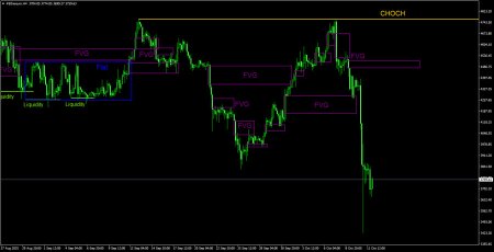 CHOCH – слом трендовой структуры. Liquidity – Ликвидность, Stop Loss трейдеров, которые маркет-мейкеры используют для набора своих позиций. FVG – Область ценовой неэффективности. Цена очень быстро проходит такие области, что указывает на полное отсутствие одной из сторон на рынке. В последствии цена имеет свойство возвращаться и получать реакцию от таких областей. IFVG – Инвертированная область ценовой неэффективности. После возврата к такой области, цена не получает от нее реакцию, а импульсно пробивает, а затем тестирует ее с другой стороны. OB – Ордер-блок. Свеча, на которой маркет-мейкер открывал позицию с целью забора ликвидности для формирования собственной позиции в противоположном направлении. Материал предоставлен компанией InstaForex - www.instaforex.comНовость предоставлена компанией
