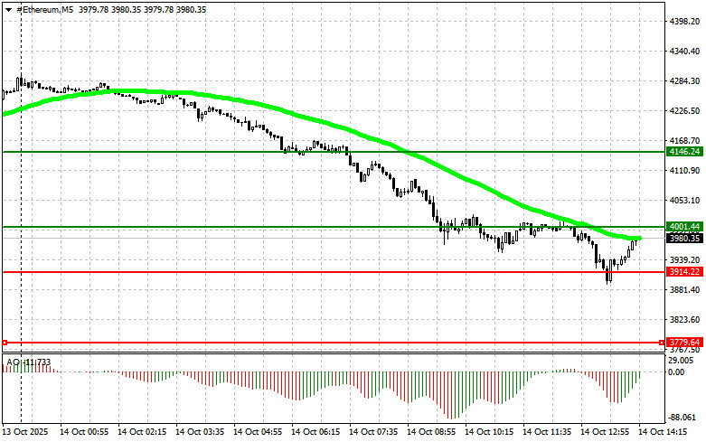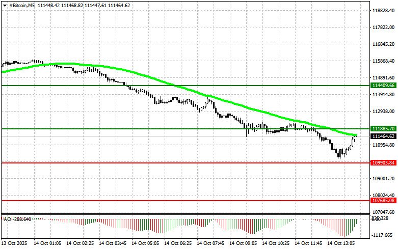 Биткоин вернулся к отметке в $110 000. Эфир также откатился до $3890.Очевидно, что на рынке продолжают вымываться кредитные деньги. Несмотря на значимость произошедшего в конце прошлой недели, когда покупатели с плечом потерял около $20 млрд, фундаментальная структура рынка не претерпела изменений. Объемы спотовых сделок по-прежнему значительны, приток инвестиций в биржевые фонды ETF также остается, а активность в сети блокчейн остается высокой. Стоит понимать, что подобного рода ликвидации представляют собой важную, хотя и болезненную, процедуру очистки рынка. Избыточные заемные средства были ликвидированы, а спекулятивные сделки сокращены. Сейчас рынок переходит в стадию консолидации, отличающуюся возвращением осторожности, селективным принятием рисков и более обдуманным восстановлением доверия как на спотовом рынке, так и на рынке деривативов. По этой причине к покупкам можно постепенно возвращаться уже в районе $110 000, но не стоит исключать и более крупного движения вниз к $106 000, так что торгуйте с запасом и не подвергайте себя большим заемным рискам.Что касается внутридневной стратегии на криптовалютном рынке, то действовать дальше буду, также опираясь на любые крупные просадки биткоина и эфира в расчете на продолжение развития бычьего рынка в среднесрочной перспективе, который никуда не делся. Bitcoin Сценарий на покупку Сценарий №1: покупать биткоин сегодня буду при достижении точки входа в районе $111 800 с целью роста к уровню $114 400. В районе $114 400 буду выходить из покупок и продавать сразу на отскок. Перед покупкой на пробой нужно убедиться в том, что 50-дневная средняя скользящая находится ниже текущей цены, а индикатор Awesome находится в зоне выше нуля. Сценарий №2: покупать биткоин можно от нижней границы $109 900 при отсутствии рыночной реакции на ее пробой в обратную сторону к уровням $111 800 и $114 400.Сценарий на продажу Сценарий №1: продавать биткоин сегодня буду при достижении точки входа в районе $109 900 с целью падения к уровню $107 600. В районе $107 600 буду выходить из продаж и покупать сразу на отскок. Перед продажей на пробой нужно убедиться в том, что 50-дневная средняя скользящая находится выше текущей цены, а индикатор Awesome находится в зоне ниже нуля. Сценарий №2: продавать биткоин можно от верхней границы $111 800 при отсутствии рыночной реакции на ее пробой в обратную сторону к уровням $109 900 и $107 600.Ethereum Сценарий на покупкуСценарий №1: покупать эфир сегодня буду при достижении точки входа в районе $4000 с целью роста к уровню $4146. В районе $4146 буду выходить из покупок и продавать сразу на отскок. Перед покупкой на пробой нужно убедиться в том, что 50-дневная средняя скользящая находится ниже текущей цены, а индикатор Awesome находится в зоне выше нуля. Сценарий №2: покупать эфир можно от нижней границы $3914 при отсутствии рыночной реакции на ее пробой в обратную сторону к уровням $4001 и $4146.Сценарий на продажуСценарий №1: продавать эфир сегодня буду при достижении точки входа в районе $3914 с целью падения к уровню $3779. В районе $3779 буду выходить из продаж и покупать сразу на отскок. Перед продажей на пробой нужно убедиться в том, что 50-дневная средняя скользящая находится выше текущей цены, а индикатор Awesome находится в зоне ниже нуля. Сценарий №2: продавать эфир можно от верхней границы $4001 при отсутствии рыночной реакции на ее пробой в обратную сторону к уров