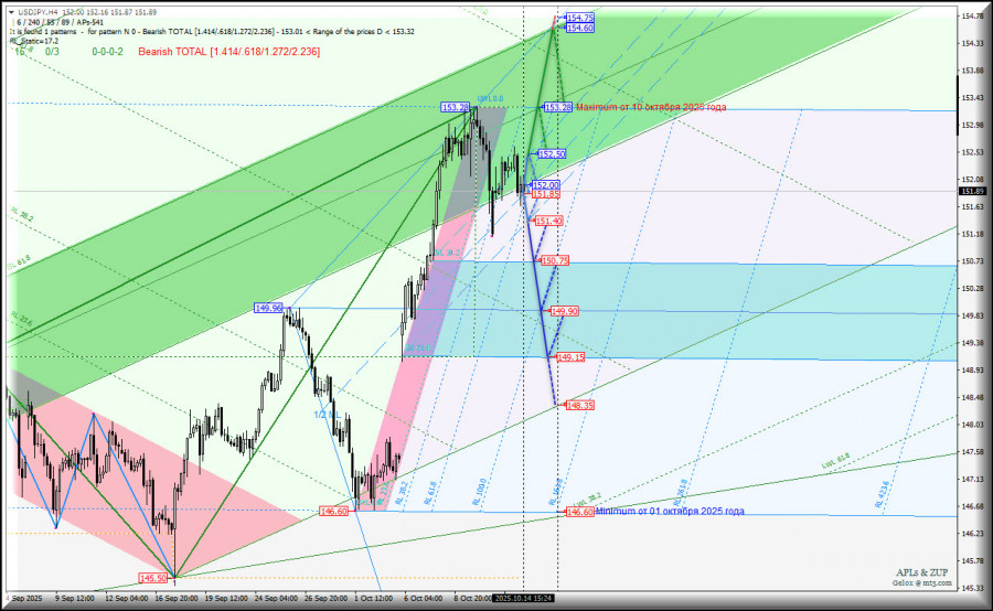 US Dollar vs Japanese Yen - h4 - основные уровни для торговли с 15 октября 2025 г. Комплексный анализ APLs & ZUP