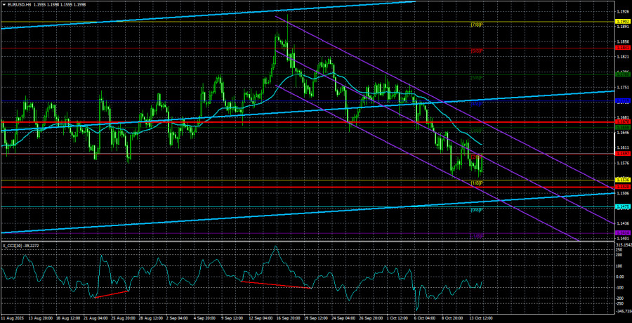 Валютная пара EUR/USD в течение вторника угадайте что? Правильно, вновь находилась в нисходящем движении. В принципе, уже практически каждый день может писать одно и то же – доллар снова подорожал, для этого снова не было ни одной веской причины. Безусловно, причины при желании можно найти всегда. И даже во вторник. К примеру, индексы экономических ожиданий в Евросоюзе и Германии в октябре оказались ниже прогнозов. Чем не причина вновь продавать евровалюту? Только вот в подобных умозаключениях есть одна проблема. Почему рынок параллельно с отработкой негативных для евро факторов игнорирует негативные факторы для доллара? Напомним, что «шатдаун» в США продолжается, рынок труда сокращается, ФРС настроена в отличие от ЕЦБ «по-голубиному», а Трамп в пятницу начал новый виток эскалации торговой войны с Китаем. Этих причин мало для падения доллара хотя бы на 100 пунктов? В данное время рынок продолжает игнорировать практически весь негатив для доллара. А теперь попробуйте задуматься, почему мы назвали эту статью не «Почему растет доллар?», а «Для чего растет доллар?». Недавние события на криптовалютном рынке показали, как умеет манипулировать крупный игрок. Если биткоин и эфир просели относительно несильно, то многие альткоины теряли до 100% своей стоимости за 10 минут. Теперь вопрос: какое теперь будет доверие к 99% альткоинов у трейдеров, если они понимают, что даже ордера Stop Loss их не спасут? Если они понимают, что в любой момент цена может рухнуть до 0? Это же абсолютно нерыночные инструменты. И ведь до сих пор не последовало ни одного нормального объяснения, что случилось в пятницу вечером? Аналитики продолжают твердить, что Дональд Трамп ввел новые тарифы против Китая, чем и спровоцировал падение криптовалютного рынка. Тот факт, что Дональд Трамп вводит новые тарифы каждую неделю, этих «экспертов» абсолютно не интересует. Тот факт, что биткоин прекрасно себя чувствовал в последние 4-5 месяцев на фоне той же самой торговой войны – тоже. А доллар вообще никак не реагирует ни на «шатдаун», ни на новую эскалацию торгового противостояния. Но формальная причина обвала есть? Что еще нужно? Мы считаем, что примерно то же самое сейчас происходит и с долларом США. Может быть это не манипуляция маркет-мейкеров в прямом смысле этого слова, но рост американской валюты полностью алогичный. Что хотят сказать крупные игроки розничным трейдерам таким движением? Что доллар будет дорожать, а худшее для него позади. Что доллар остается «мировой резервной валютой». Пары EUR/USD и GBP/USD просядут посильнее, а затем в самым неожиданный момент начнется новый сильный рост, ибо крупные игроки к тому времени уже сформируют свои огромные длинные позиции. Также мы можем добавить, что на дневном ТФ по обеим парам флэт, поэтому для падения и причины никакие не нужны. Одно из двух: либо мы наблюдаем глобальную техническую коррекцию, либо манипуляцию. Или и то, и то вместе взятое. Однако исход, с нашей точки зрения, может быть только один. Средняя волатильность валютной пары EUR/USD за последние 5 торговых дней по состоянию на 15 октября составляет 75 пунктов и характеризуется, как «средняя». Мы ожидаем движение пары между уровнями 1,1520 и 1,1670 в среду. Старший канал линейной регрессии направлен вверх, что по-прежнему указывает на восходящую тенденцию. Индикатор CCI заходил в область перепр