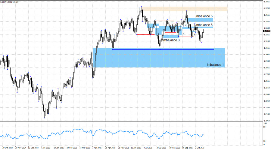 Реакция на ордер-блок – это сильный сигнал, после которого и началось наступление медведей. Но в то же время информационный фон для доллара в 2025 году крайне редко бывает благоприятным, чтобы медведи атаковали постоянно. Давление Дональда Трампа на ФРС, фиктивные увольнения чиновников, вечная критика Джерома Пауэлла, продолжающая торговая война, «шатдаун» и новая эскалация торговой войны между США и Китаем – это те факторы, которые не позволяют мне прогнозировать рост доллара. Трейдеры в данное время закрывают глаза на многий негатив для доллара, но на длинной дистанции принимают верные решения.