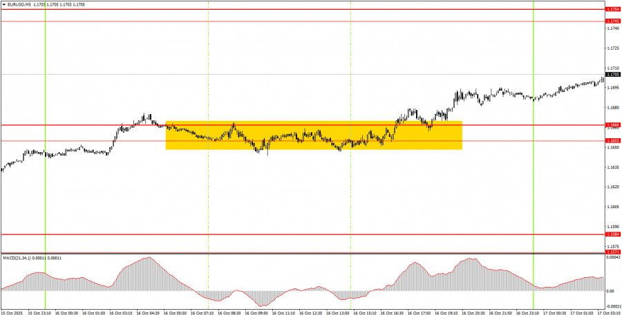 На часовом таймфрейме пара EUR/USD наконец-то показывает признаки разворота наверх. Нисходящая линия тренда вновь преодолена, а общий фундаментальный и макроэкономический фон остается для доллара США провальным. Таким образом, мы продолжаем ожидать возобновления восходящего тренда 2025 года. В пятницу пара EUR/USD может двигаться в любом направлении, так как фундаментальных и макроэкономических событий вновь будет крайне мало. Вчера был сформирован сигнал на покупку в области 1,1655-1,1666, поэтому лонги остаются актуальными с целью область 1,1745-1,1754. На 5-минутном ТФ следует рассматривать уровни 1,1354-1,1363, 1,1413, 1,1455-1,1474, 1,1527, 1,1571-1,1584, 1,1655-1,1666, 1,1745-1,1754, 1,1808, 1,1851, 1,1908, 1,1970-1,1988. На пятницу ни в Евросоюзе, ни в США не запланировано ни одного важного события/публикации. Таким образом, волатильность сегодня вновь может быть очень низкой, но европейская валюта может продолжить ползти вверх, так как для этого имеются все необходимые основания.Основные правила торговой системы: