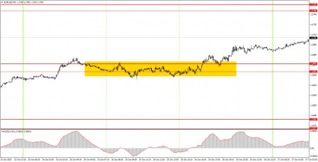 1) Сила сигнала считается по времени, которое потребовалось на формирование сигнала(отскок или преодоление уровня). Чем меньше времени потребовалось, тем сильнее сигнал. 2) Если около какого-либо уровня были открыты две или больше сделки по ложным сигналам, то все последующие сигналы от этого уровня следует игнорировать. 3) Во флэте любая пара может формировать массу ложных сигналов или же не формировать их вовсе. Но в любом случае при первых признаках флэта лучше переставать торговать. 4) Торговые сделки открываются во временной период между началом европейской сессии и до середины американской, после чего все сделки должны быть закрыты вручную. 5) На часовом ТФ по сигналам от индикатора MACD желательно торговать только при наличие хорошей волатильности и тренда, который подтверждается линией тренда или трендовым каналом. 6) Если два уровня расположены слишком близко друг к другу(от 5 до 20 пунктов), то следует рассматривать их, как область поддержки или сопротивления. 7) При прохождении 15 пунктов в верном направлении следует выставить Stop Loss в безубыток.Что на графиках: