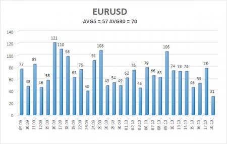 Обзор пары EUR/USD. 21 октября. Очередной скучный понедельник.