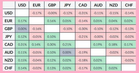 Но на данный момент медведя сильнее быков.В таблице ниже представлено процентное изменение курса доллара США по отношению к основным валютам на сегодняшний день. Наибольшее укрепление доллар США продемонстрировал по отношению к британскому фунту.