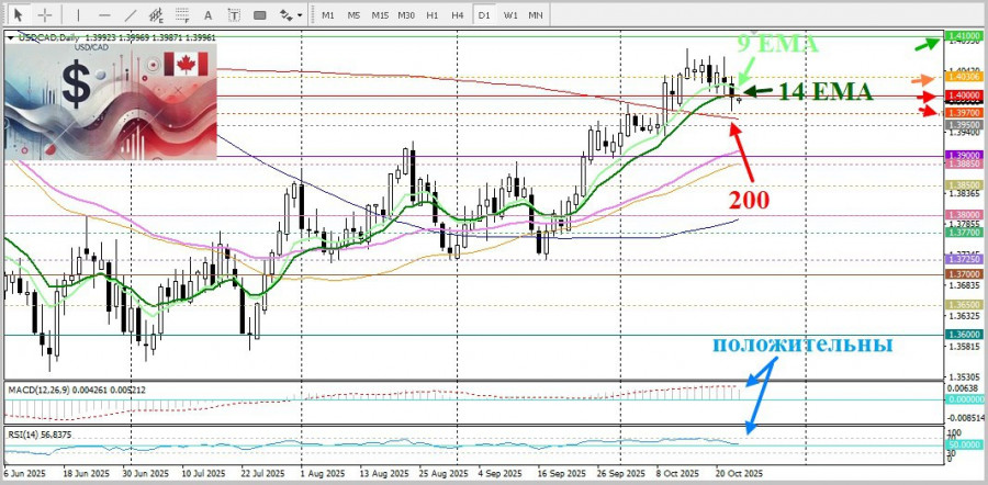 Нефтяные котировки выросли до почти двухнедельных максимумов после введения США санкций против крупных российских нефтяных компаний, что оказало поддержку канадскому доллару, который традиционно коррелирует с ценами на сырьевые товары. Важно отметить, что Канада является крупнейшим экспортером нефти в Соединенные Штаты, и рост цен на "черное золото", как правило, оказывает положительное влияние на курс канадской валюты.Как заявил премьер-министр Канады, Марк Карни, многолетний процесс тесной экономической интеграции между Канадой и США завершился. Участникам рынка стоит внимательно следят за развитием ситуации относительно сохраняющейся торговой напряженности между этими двумя странами.