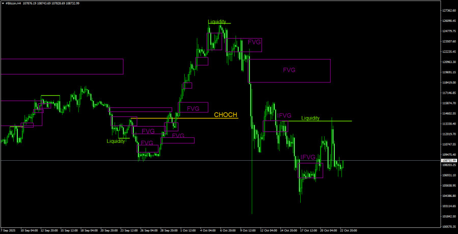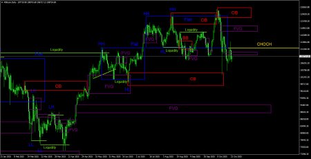 Торговые рекомендации по Биткоину(Bitcoin) на 23 октября по системе ICT.