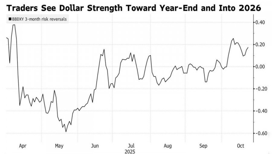 Европа еще находится во власти драмы с тупиком бюджета во Франции, а EUR/USD готова лишиться своего самого главного козыря – дивергенции в монетарной политике. Чиновники ЕЦБ в один голос говорят, что ставки находятся в нужном месте, но это не помогает региональной валюте. На Forex идет переоценка взглядов на судьбу ставки по федеральным фондам. Срочный рынок понимает, что забежал вперед себя. После снижения стоимости заимствований в сентябре деривативы поверили не только в повторение аналогичных шагов ФРС в октябре и декабре. Они рассчитывают на три акта монетарной экспансии в 2026, хотя FOMC в последних прогнозах показал только один. По мере приближения встречи 28 и 29 октября инвесторы понимают, что поспешили. Инфляция в сентябре рискует разогнаться до 3,1%, максимальной отметки с весны 2024. Опережающий индикатор от ФРБ Атланты сигнализирует о расширении ВВП на 3,9% в третьем квартале. Ралли фондовых индексов, падение доходности облигаций и все еще слабый по сравнению с началом года доллар США говорят о благоприятных финансовых условиях. Такая комбинация создает предпосылки для паузы в цикле снижения ставок. В обратном случае инфляция еще больше ускорится и перед глазами возникнет призрак 1970-х. Тогда Федрезерву пришлось возвращаться к монетарной рестрикции, что обернулось рецессией. Динамика рисков разворота по американскому доллару