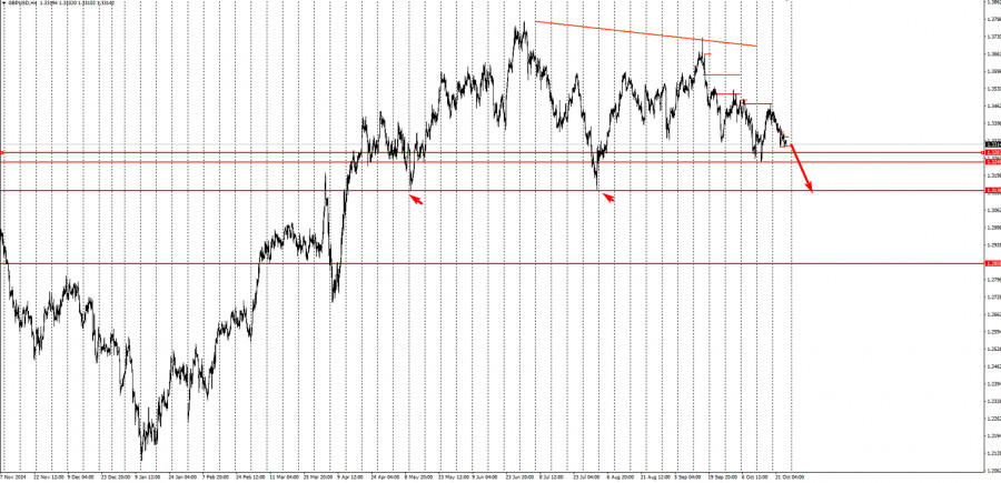 Предлагаю рассмотреть шортовые позиции с отката на шортовый слом по схеме, представленной на скрине выше. Риски ограничить 1,33557. Прибыль зафиксировать на пробое 1,32460 и 1,31360.