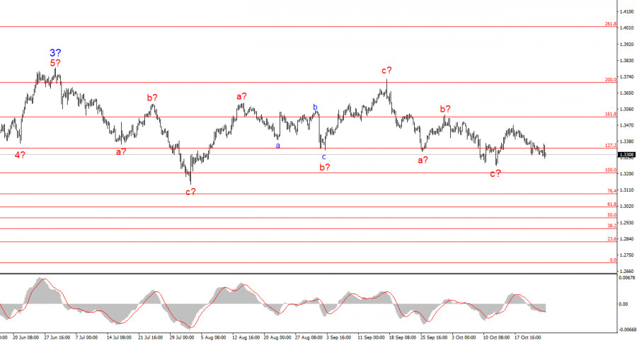 Исходя из проведенного анализа EUR/USD, я делаю вывод, что инструмент продолжает построение повышательного участка тренда. Сейчас на рынке сложилась пауза, но политика Дональда Трампа и ФРС остаются весомыми факторами падения американской валюты. Цели текущего участка тренда могут простираться вплоть до 25-й фигуры. В данное время мы можем наблюдать построение коррекционной волны 4, которая принимает очень сложный и протяженный вид. Следовательно, в ближайшее время я по-прежнему рассматриваю только покупки. До конца года я жду повышения евровалюты к отметке 1,2245, что соответствует 200,0% по Фибоначчи. Волновая картина по GBP/USD: