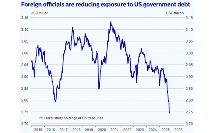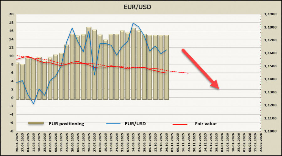 ЕЦБ в четверг проводит очередное заседание по кредитно-денежной политике, и пока нет признаков того, что ставка может быть снижена. По словам главы ЕЦБ Лагард, кредитно-денежная политика находится в хорошем состоянии и у нее нет причин менять свое мнение, хотя риски для еврозоны в целом направлены в сторону ухудшения экономических перспектив. Последние данные по инфляции в целом соответствуют позиции ЕЦБ, риск замедления роста ВВП уравновешивается неплохими данными PMI, активность выросла и в промышленным секторе, и в секторе услуг. Поскольку ближайшее заседание не будет сопровождаться новыми прогнозами, то основное внимание будет направлено на декабрьское заседание, а сейчас для евро ситуация выглядит вполне стабильной.Для доллара ситуация выглядит, на первый взгляд, довольно негативно. Сразу множество факторов дает уверенно медвежий взгляд на его перспективы, к которым можно отнести слабость рынка труда, отставание темпов роста ВВП от ряда зарубежных экономик, в первую очередь азиатских, угроза независимости ФРС, не снижающиеся темпы прироста государственного долга. Сейчас спрос на доллар обусловлен ростом инвестиций, американские акции занимают примерно 65% от всего мирового фондового рынка по сравнению с 40% в 2020 г. В то же время взрывной рост фондовых индексов поддерживается почти исключительно технологическим сектором и резким ростом интереса к технологиям искусственного интеллекта, что само по себе фактор довольно сомнительный и имеет во многом схожие признаки такого же сильного роста в начале 2000-х и бумов доткомов. Но если инвесторы потеряют уверенность в своих инвестициях, как это случилось сразу же после объявления Трампом Дня освобождения, то последствия для доллара будут крайне серьезными. Также следует отметить, что инвестиции идут именно в акции, а не в гособлигации, официальные иностранные институты устойчиво продают казначейские облигации, то есть процесс диверсификации активов не прерывается.Мы видим ситуацию как благоприятную для доллара в краткосрочной перспективе и довольно угрожающую в перспективе долгосрочной. Пока бум, вызванный интересом к ИИ, сохраняется, пока правительство США решает свои экономические проблемы с позиции силы, доллару ничто не угрожает и в ближайшей перспективе он вполне способен продолжить рост. Очень многое для доллара зависит от исхода противостояния по торговой политике с Китаем, поскольку усиление противостоянии вполне способно усилить процесс хеджирования рисков, связанных с долларом, и в этом случае возможно снижение спроса на него. И напротив, если Трампу удастся реализовать свои требования в виде конкретных договоренностей, то это будет сигналом инвесторам к тому, что доллар по-прежнему остается главной мировой валютой, и в этом случае поток инвестиций в США может усилиться, что приведет к росту спроса на доллар и к его укреплению по всему спектру валютного рынка. Отсутствие отчетов CFTC по валютному позиционированию существенно мешает в оценке перспектив евро, будем исходить из того, что признаков возобновления роста евро даже с учетом неполных данных нет. Расчетная цена ниже долгосрочной средней и направлена на юг.