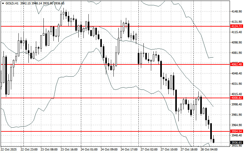 Золото продолжает торговаться чуть ниже отметки в 4000 долларов за унцию после резкой распродажи, которая наблюдалась в начале этой недели после того, как прогресс в торговых переговорах между США и Китаем подорвал спрос на активы-убежища.Этот уровень также является психологически важным, и его пробитие вниз может спровоцировать дальнейшую распродажу, поскольку краткосрочные трейдеры, вероятно, будут закрывать свои длинные позиции, добавляя топлива в огонь медвежьего тренда. Однако, несмотря на текущую слабость цен, фундаментальные факторы, поддерживающие спрос на золото, остаются ощутимыми. Геополитическая напряженность, растущие опасения по поводу глобального экономического роста и сохраняющаяся неопределенность в отношении будущей денежно-кредитной политики центральных банков продолжают выступать в качестве поддерживающих факторов. Трейдеры, обеспокоенные потенциальной рецессией, все еще рассматривают золото как надежное средство сохранения капитала в периоды нестабильности.Спрос на золото со стороны центральных банков также остается устойчивым, поскольку страны стремятся диверсифицировать свои резервы и снизить свою зависимость от доллара США. Ключевым фактором, который необходимо отслеживать в ближайшие недели, станет прогресс в торговых переговорах между США и Китаем. Если переговоры вновь зайдут в тупик или если обострятся торговые баталии, спрос на золото, вероятно, возрастет, что подтолкнет цены обратно к уровню в 4000 долларов и выше. В противном случае золото может оставаться под давлением до тех пор, пока не появятся новые катализаторы для его повышения.Во вторник стоимость золота снизилась, достигнув отметки $3973, после снижения на 3,2% на предыдущей сессии. Однако с начала года золото всё ещё показывает рост более чем на 50%.Текущее падение может предоставить крупным трейдерам и центральным банкам возможность увеличить объёмы закупок. Центральный банк Южной Кореи, который в последний раз покупал золото более десяти лет назад, рассматривает возможность дополнительных закупок в среднесрочной и долгосрочной перспективе.Также ожидается, что члены Федеральной резервной системы снизят процентные ставки на 25 базисных пунктов на своём двухдневном заседании, которое завершится в среду. Снижение ставок обычно выгодно для золота и его цены.Что касается текущей технической картины золота, то покупателям нужно забирать ближайшее сопротивление $3954. Это позволит нацелиться на $4008 выше которого пробиться будет довольно проблематично. Самой дальней целью выступит области $4062. В случае падения золота медведи попытаются забрать контроль над $3906. Если это удастся сделать, пробой диапазона нанесет серьезный удар по позициям быков и столкнет Gold к минимуму $3849 с перспективой выхода на $3802.Материал предоставлен компанией InstaForex - www.instaforex.com