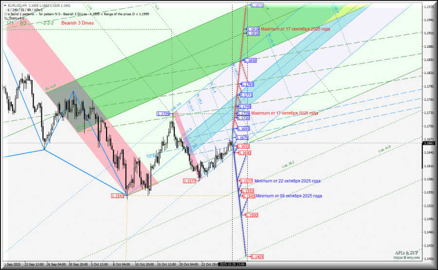 Euro vs US Dollar - h4 - внутридневная торговля с 29 октября 2025 года. Комплексный анализ APLs & ZUP