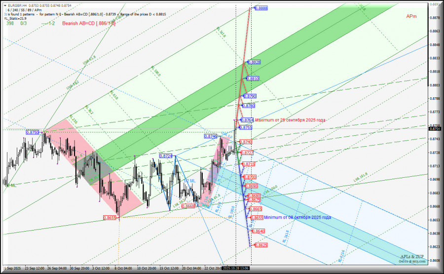 Euro vs Great Britain Pound - -h4 - внутридневная торговля с 29 октября 2025 года . Комплексный анализ APLs & ZUP