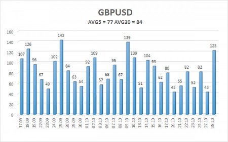Валютная пара GBP/USD в течение вторника торговалась иначе, нежели пара EUR/USD, хотя в последние дни, недели и месяцы обе валютные пары показывали схожую динамику. Таким образом, причины падения британской валюты следовало искать в Великобритании. Напомним, что на вторник не было запланировано ни одного макроэкономического отчета или другого важного события ни в ЕС, ни в Великобритании, ни в США. Таким образом, искать пришлось долго и не в экономике. А причиной нового обвала британского фунта стало выступление просто «черного» для фунта политика – Рэйчел Ривз, которая занимает должность главы Казначейства Великобритании. Напомним, что ранее госпожа Ривз спровоцировала уже минимум два обвала британской валюты своими комментариями и действиями. Сначала Ривз разрыдалась в Парламенте Великобритании на фоне критики ее проекта бюджета на следующий финансовый год. Затем Ривз несколько раз давала комментарии относительно государственных облигаций и состояния экономики Великобритании. Еще позже представила провальный проект бюджета, который вновь подвергся жесткой критике. Таким образом, у трейдеров уже сложилась определенная логическая закономерность – если выступает глава Казначейства, значит нужно готовиться к продажам фунта. На этот раз госпожа Ривз завуалированно дала понять, что выход Британии из состава ЕС был ошибкой, и что восстановление торговых и экономических связей с Альянсом принесет Великобритании огромную выгоду. Также, по словам Ривз, новые соглашения с Европейским союзом, которые убирают некоторые ограничения, вызывают поддержку общественности внутри страны. В целом, после 2016 года, когда был проведен исторический референдум, и после 2020 года, когда Британия официально покинула ЕС, среди британского населения было проведено множество социальных опросов с целью понять, как изменилось отношение к Brexit? И большая часть этих опросов показывает, что британцы в целом сожалеют о выходе из ЕС и хотели бы когда-нибудь вернуться в Альянс. Следует напомнить, что еще в 2016 году число приверженцев Brexit превысило число противников всего лишь на 3%. То есть фактически половина населения Великобритании еще в 2016 году не поддерживала разрыв с ЕС. А с годами их количество только растет. Теперь посмотрим, как ведет себя фунт и для примера евровалюта с 2016 года. Фунт стерлингов с 2016 года максимально терял 28% стоимости по отношению к доллару США, а на текущий момент торгуется дешевле на 8%. Европейская валюта с 2016 года максимально теряла 15% стоимости, а сейчас торгуется дороже на 3%. Получается, что Brexit действительно ударил по экономике Великобритании, а выгода от разрыва с ЕС оказалась меньше, чем убыток. Почему фунт стерлингов упал, если Великобритания вроде бы хочет восстановить связи с ЕС? Потому что все это лишь «махание кулаками после драки». Если Великобритания когда-нибудь и вернется в ЕС, то случится это очень нескоро. Участники рынка в последние 5-6 лет были заняты привыканием к новой экономической реальности, а теперь вдруг главный казначей страны чуть ли не открытым текстом заявляет, что Brexit был ошибкой... Инвесторы очень не любят изменения. Они любят стабильность. Средняя волатильность пары GBP/USD за последние 5 торговых дней составляет 77 пунктов. Для пары фунт/доллар это значение является «средним». В среду, 29 октября, таким образ