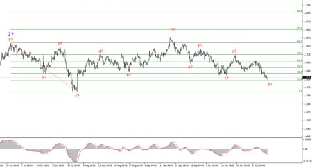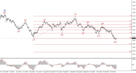 Волновая картина инструмента GBP/USD видоизменилась. Мы продолжаем иметь дело с повышательным, импульсным участком тренда, но его внутренняя волновая структура приобретает более сложный вид. Волна 4 принимает трехволновой вид, и ее структура получается в разы протяженнее, чем у волны 2. Очередная понижательная коррекционная структура близится к своему завершению. Я продолжаю ожидать, когда основная волновая структура возобновит свое построение с первоначальными целями около 38 и 40 фигур, и считаю, что это может произойти уже в начале ноября.Основные принципы моего анализа: