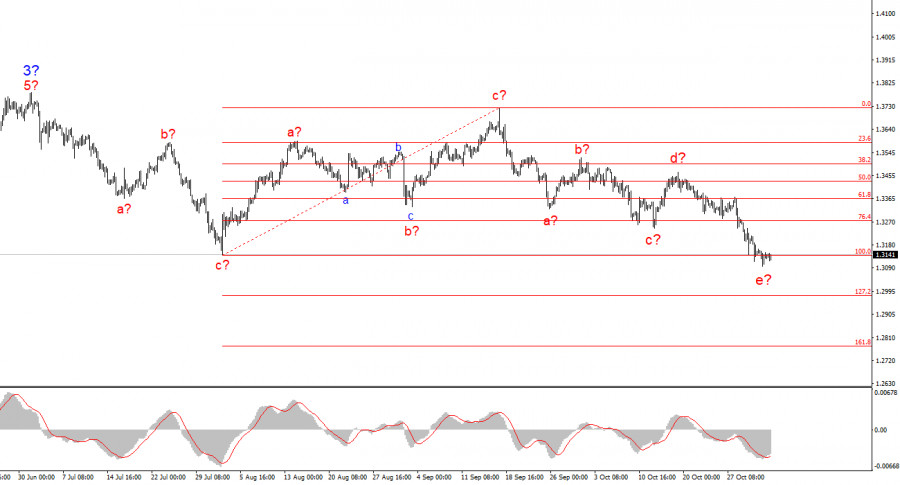Исходя из проведенного анализа EUR/USD, я делаю вывод, что инструмент продолжает построение повышательного участка тренда. Сейчас на рынке сложилась пауза, но политика Дональда Трампа и ФРС остаются весомыми факторами падения американской валюты в будущем. Цели текущего участка тренда могут простираться вплоть до 25-й фигуры. В данное время мы можем наблюдать построение коррекционной волны 4, которая принимает очень сложный и протяженный вид. Следовательно, в ближайшее время я по-прежнему рассматриваю только покупки, так как любые понижательные структуры имеют коррекционный вид. Последняя структура – a-b-c-d-eможет близиться к своему завершению. Волновая картина по GBP/USD: