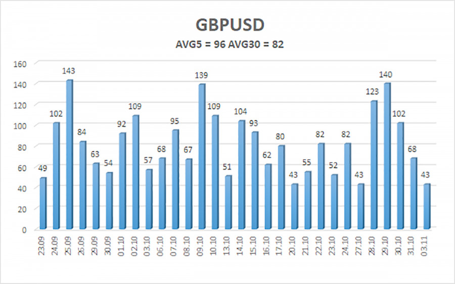 Валютная пара GBP/USD в течение понедельника продолжала торговаться очень низко большую часть дня. В предыдущей статье мы говорили о том, что «шатдаун» в США продолжается уже 35 дней, а республиканцы и демократы лишь делают вид, что пытаются договориться о финансировании. На самом деле – нет. Кстати, Дональд Трамп уже предпринимал попытку надавить на демократов, пытаясь уволить несколько тысяч государственных сотрудников. Его решение заблокировал Верховный суд США. Тот самый суд, который как раз в ноябре должен вынести еще один вердикт – были ли все торговые пошлины Трампа правомерными. Если нет, то Суд обязан их отменить, и тогда в Америке начнется «катавасия» с возвратом всех таможенных платежей, которые правительство Трампа уже успело собрать. Поэтому пока что «шатдаун» продолжается, а мир ждет вердикта Верховного суда США. в то же самое время внимание рынка на противостоянии Трампа и ФРС несколько ослабло. Вероятно, многие трейдеры посчитали, что ФедРезерв возобновил снижение ключевой ставки, поэтому теперь президенту США уже не нужно критиковать каждую неделю Джерома Пауэлла и пытаться уволить еще хоть кого-нибудь из действующего состава Комитета FOMC. Однако сам же рынок посчитал после последнего заседания ФРС, что в декабре регулятор может взять паузу. Как к этой паузе отнесется Дональд Трамп? С нашей точки зрения, ответ очевиден. Нам также очевидно, что война Трампа и ФРС не завершена. ФРС уже сейчас дает понять, что может еще один или два раза провести смягчение монетарной политики, но дальше ее внимание вновь переключится на инфляцию, которая, хоть и медленно, но растет в последние месяцы. Таким образом, отсутствие новых «перестрелок» между Трампом и ФРС – это лишь временное затишье. В следующем году Джером Пауэлл уйдет в отставку, но случится это лишь в мае. Когда он покинет свой пост, придется новый глава, естественно, человек Трампа. И тогда «активных голубей» в составе FOMC станет четверо из двенадцати. Все равно слишком мало, чтобы понизить ключевую ставку так, как хочет республиканец. Как только ФРС возьмет паузу, возобновятся поток критики и попытки уволить еще какого-нибудь нерадивого чиновника. 2026 год обещает быть еще более интересным, чем 2025. Как при таком фундаментальном фоне может расти доллар, по-прежнему непонятно. Впрочем, мы продолжаем считать, что на дневном ТФ продолжается флэт, который и объясняет падение пары. Во флэте классическим движением считается движение от одной границе канала к другой. Именно это мы и наблюдаем в последние месяцы. Таким образом, на текущих ценовых значениях мы бы вели себя предельно аккуратно. Мы и раньше никому не могли посоветовать продавать пару, а сейчас, когда вероятность отскока от нижней границы канала 1,3140-1,3780 чрезвычайно велика, тем более. Мы также считаем, что сделки могут открываться, когда на рынке нет никаких противоречий. А сейчас их – в избытке. Средняя волатильность пары GBP/USD за последние 5 торговых дней составляет 96 пунктов. Для пары фунт/доллар это значение является «средним». Во вторник, 4 ноября, таким образом, мы ожидаем движения внутри диапазона, ограниченного уровнями 1,3051 и 1,3243. Старший канал линейной регрессии направлен вниз, но только из-за 4-хмесячного флэта. Индикатор CCI четырежды заходил в область перепроданности, что предупреждает о возобновлении восход