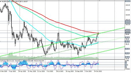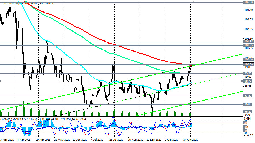 *) см. также: Торговые индикаторы InstaForex по USDX[/i] Финансовые рынки переживают эпоху повышенной волатильности, обусловленную растущими рисками и отсутствием ясности относительно будущих шагов Федеральной резервной системы. Индекс доллара США USDX приближается к критической отметке 100.00, одновременно пересекаясь со скользящей средней 200-дневного периода на дневном графике. Это создает ситуацию, когда инвесторы внимательно следят за каждым движением индекса, ожидая возможного прорыва важного уровня поддержки/сопротивления. Основные факторы влияния