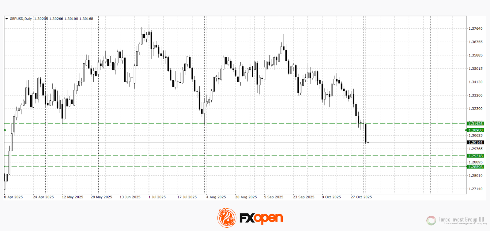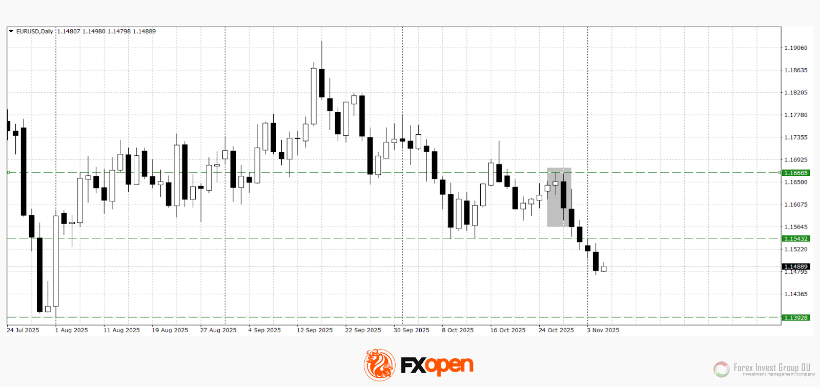 FxSignal 5-11-2025, 13:00 3 Аналитика, прогнозы валютного рынкаЕвропейские валюты остаются под давлением третью неделю подряд: евро консолидируется у нижних границ диапазона, а фунт продолжает снижение в преддверии заседания Банка Англии. Давление на пары сохраняется на фоне усиливающейся неопределенности на глобальных рынках. Дополнительным фактором выступают риски продолжающегося шатдауна в США, способные затормозить публикацию ключевых данных и повлиять на оценку монетарных перспектив ФРС.