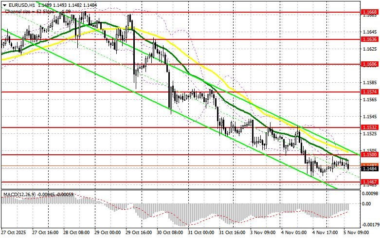 В своем утреннем прогнозе я обращал внимание на уровень 1.1499 и планировал от него принимать решения по входу в рынок. Давайте посмотрим на 5-минутный график и разберемся с тем, что там произошло. Рост в район 1.1499 произошел, но до теста не хватило буквально пары пунктов, так что я остался без сделок. На вторую половину дня техническая картина не пересматривалась.Для открытия длинных позиций по EURUSD требуется:Несмотря на пересмотренные в лучшую сторону показатели по активности в сфере услуг стран еврозоны, евро попросту проигнорировал эти данные, что является довольно плохим сигналом для будущих перспектив роста. Во второй половине дня ожидаются аналогичные данные, но уже по США. Выходит индекс деловой активности в секторе услуг от ISM, индекс PMI для сферы услуг и композитный индекс PMI. Также выйдет весьма важный отчет по изменению числа занятых от ADP за октябрь, который может сильно навредить американскому доллару. Лишь в случае хороших значений давление на пару EUR/USD сохранится. В случае дальнейшего падения пары лишь формирование ложного пробоя в районе 1.1467 будет основанием для открытия длинных позиций в расчете на возврат к сопротивлению 1.1500, до теста которого в первой половине дня дело так и не дошло. Прорыв и обратный тест этого диапазона сверху вниз станут подтверждением правильной точки вход с движением к области 1.1532. Самой дальней целью будет уровень 1.1574, где буду фиксировать прибыль. При варианте снижения EUR/USD и отсутствия активности в районе 1.1467, давление на евро возрастет довольно серьезно. Медведи в таком случае сумеют дотянуться до 1.1444. Лишь после формирования там ложного пробоя собираюсь действовать на покупку евро. Открывать длинные позиции сразу на отскок планирую от 1.1395 с целью восходящей коррекции в 30-35 пунктов внутри дня.Для открытия коротких позиций по EURUSD требуется: Продавцы не спешат возвращаться в рынок, но и, как вы можете видеть на графике, покупатели также особо себя не проявляются даже на фоне хорошей европейской статистики. В случае коррекции пары после слабых американских отчетов формирование ложного пробоя в районе 1.1500 будет идеальным условием на открытие коротких позиций с целью снижения к уровню 1.1467. Прорыв и закрепление ниже этого диапазона станут подходящим вариантом на продажу уже с движением в район 1.1433, где ожидаю более активного проявления покупателей. Самой дальней целью выступит минимум 1.1395, где буду фиксировать прибыль. В случае движения вверх EUR/USD во второй половине дня, а также отсутствия активных действий медведей в районе 1.1500, где проходят средние скользящие, играющие на стороне продавцов, покупатели получат шанс на более резкий рывок евро вверх, что откроет дорогу в район следующего сопротивления 1.1532. Продавать там буду только после неудачного закрепления. Открывать короткие позиции сразу на отскок я планирую от 1.1574 с целью нисходящей коррекции в 30-35 пунктов.Рекомендую ознакомиться:Из-за шатдауна в США свежие данные по Commitment of Traders не публикуются. Последние актуальные лишь за 23 сентября.В COT-отчете (Commitment of Traders) за 23 сентября наблюдался рост коротких позиций и сокращение длинных. Ожидания дальнейшего снижения Федеральной резервной системой процентных ставкам продолжает оказывать давление на американский доллар. Однако покупателей евро также не становится больше, так как полити