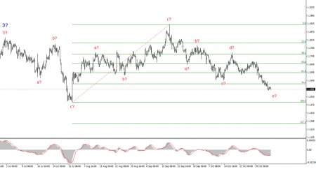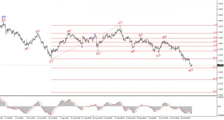 Волновая картина инструмента GBP/USD видоизменилась. Мы продолжаем иметь дело с повышательным, импульсным участком тренда, но его внутренняя волновая структура приобретает более сложный вид. Волна 4 принимает трехволновой вид, и ее структура получается в разы протяженнее, чем у волны 2. Очередная понижательная коррекционная структура близится к своему завершению. Я продолжаю ожидать, когда основная волновая структура возобновит свое построение с первоначальными целями около 38 и 40 фигур, и считаю, что это может произойти уже в начале ноября.Основные принципы моего анализа:
