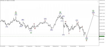 BTC/USD 4 ноября. Большая вероятность, что медведи нацелены на минимум 102088!