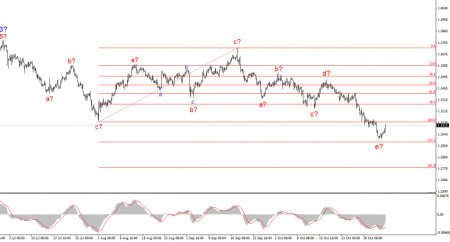 Волновая картина инструмента GBP/USD видоизменилась. Мы продолжаем иметь дело с повышательным, импульсным участком тренда, но его внутренняя волновая структура приобретает более сложный вид. Волна 4 принимает трехволновой вид, и ее структура получается в разы протяженнее, чем у волны 2. Очередная понижательная коррекционная структура близится к своему завершению. Я продолжаю ожидать, когда основная волновая структура возобновит свое построение с первоначальными целями около 38 и 40 фигур, и считаю, что это может произойти уже в начале ноября.Основные принципы моего анализа: