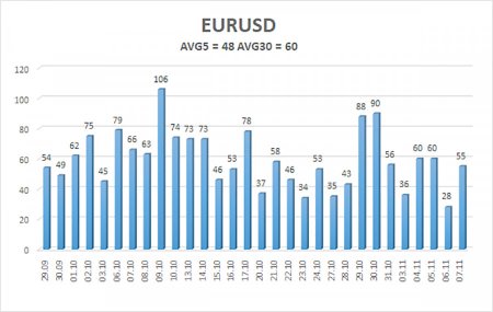 Обзор пары EUR/USD. 7 ноября. Евровалюта продолжает ползать на коленях.
