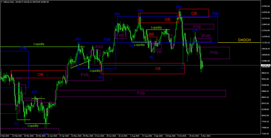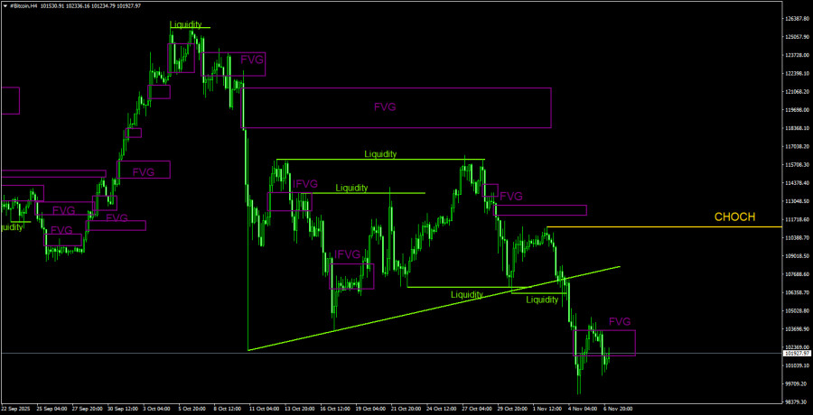 Торговые рекомендации по Биткоину(Bitcoin) на 6 ноября по системе ICT.