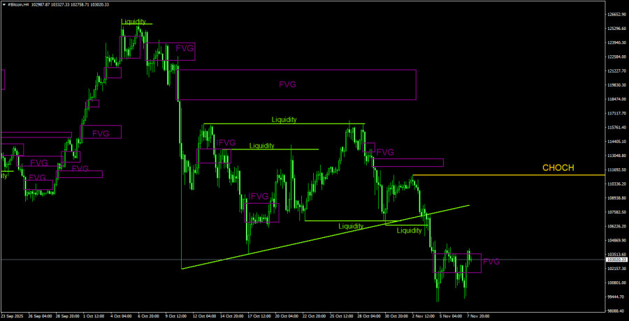 Торговые рекомендации по Биткоину(Bitcoin) на 6 ноября по системе ICT.