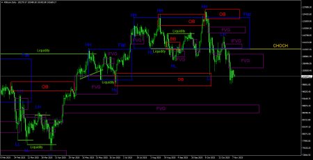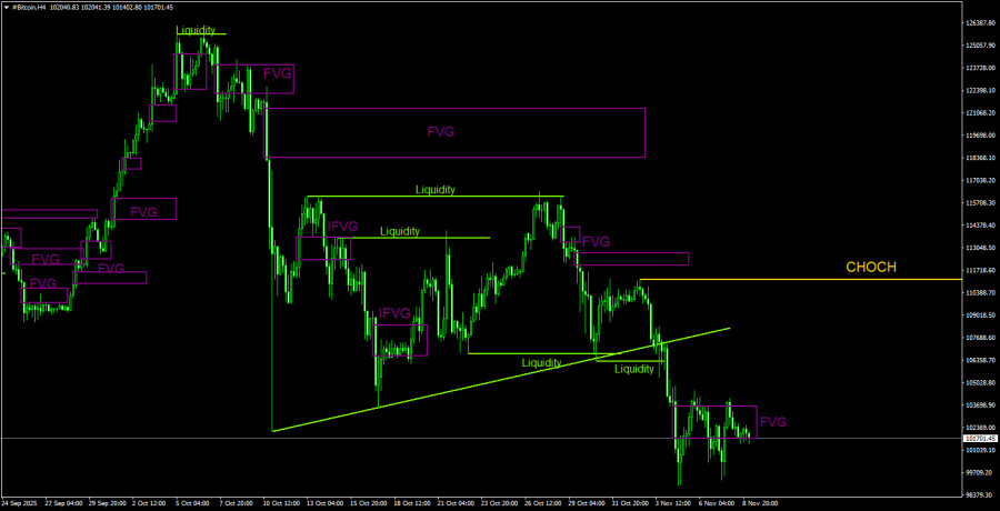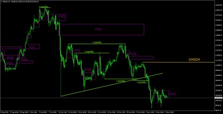 Торговые рекомендации по Биткоину(Bitcoin) на 8 ноября по системе ICT.