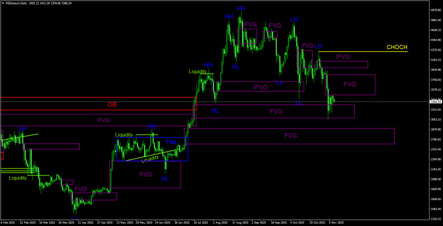 Торговые рекомендации по Эфиру(Ethereum) на 7 ноября по системе ICT.