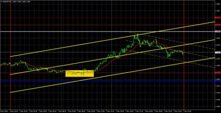 Валютная пара EUR/USD большую часть пятницы торговалась с повышением, но ближе к вечеру все же откатилась от локальных максимумов. В целом движения были полностью закономерными в техническом плане, что прекрасно видно на 5-минутном ТФ. А фундаментальных и макроэкономических событий, способных повлиять на настроение рынка, в течение дня практически не было. Однако в последние полтора месяца они и не были нужны рынку. Доллар рос при любой удобной возможности, игнорируя наличие слабой статистики, отсутствие важной статистики и любые фундаментальные события. Поэтому мы и говорим уже несколько недель подряд, что ориентироваться следует только на технические факторы. В пятницу единственным отчетом дня стал индекс настроения потребителей от университета Мичиган в США. Этот показатель в ноябре оказался значительно хуже прошлого месяца и прогнозов. Таким образом, этот отчет мог спровоцировать рост пары, но... через буквально полчаса после его публикации началось падение пары. Как видим, макроэкономический фон никакого влияния на ход торгов по-прежнему не оказывает. Цена просто достигла линию Сенкоу Спан Б, от которой отскочила и начала снижение. На 5-минутном ТФ в пятницу был сформирован один очень неплохой торговый сигнал. На европейской торговой сессии цена отскочила от уровня 1,1534, а в последствии почти отработала линию Сенкоу Спан Б. Так как дело близилось к вечеру и закрытию рынка на выходные, сделку на покупку можно было со спокойной совестью закрывать в прибыли около 40-45 пунктов.Советуем ознакомиться с другими статьями автора: