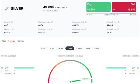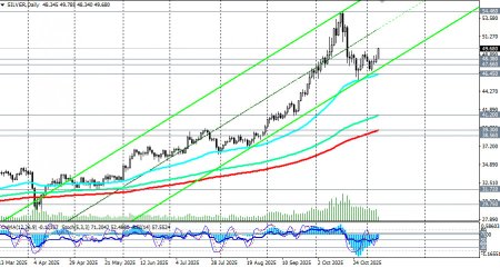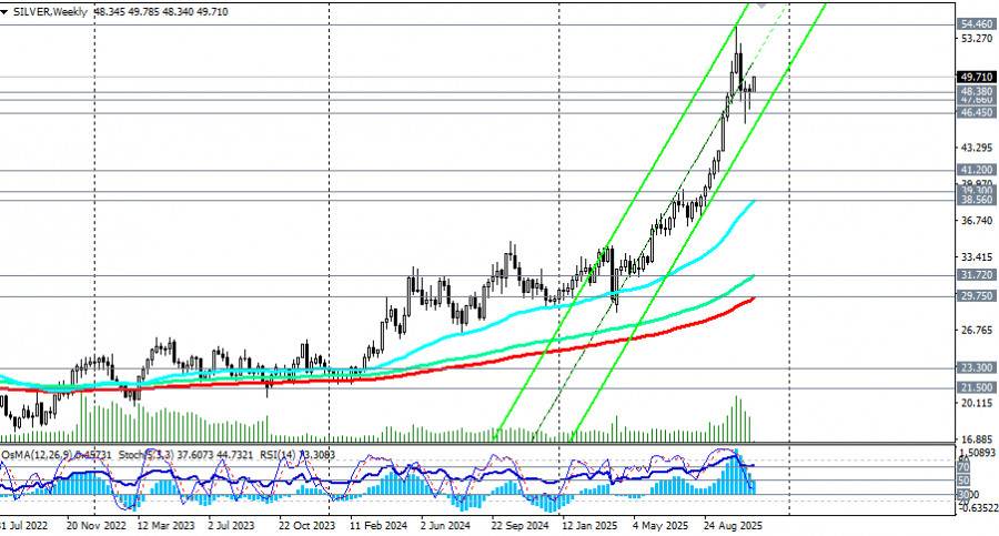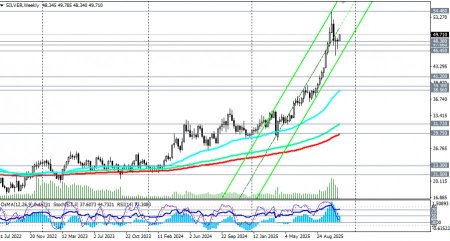 *) см. также: Торговые индикаторы InstaForex по XAG/USD[/i] В нашем сегодняшнем обзоре «[i]XAU/USD: возродившийся оптимизм покупателей» мы отметили резкий рост котировок золота и пары XAU/USD в ходе азиатской торговой сессии. Аналогичная картина складывается вокруг динамики цены на серебро. В начале сегодняшней европейской торговой сессии пара XAG/USD (SILVER в торговом терминале) превысила отметку 49.78, достигнув, таким образом, максимума с 22 октября. *) динамика цен серебра тесно связана с динамикой золота. Повышенный спрос на оба металла наблюдается в периоды неопределённости на глобальном рынке, подчёркивая их традиционную роль защитных инструментов. Специалисты обращают внимание на многочисленные драйверы, определяющие ценность серебра начиная от промышленного потребления и заканчивая его статусом альтернативного актива для инвесторов. Оно активно применяется в электронике, солнечной энергетике и медицинских технологиях, что увеличивает спрос и обеспечивает дополнительную устойчивость цене. Экономические показатели крупных индустриальных центров мира, таких как США, Китай и Индия, оказывают непосредственное влияние на динамику цен на серебро. Любой значительный сдвиг в производстве или потреблении этих регионов немедленно отражается на колебаниях стоимости металла. Несмотря на недавнюю турбулентность, цена на серебро остается в зоне глобального бычьего рынка, также как и золото. Это свидетельствует о сохраняющемся интересе инвесторов к этим металлам даже в условиях позитивных сигналов с финансовых рынков. Основные факторы влияния на рынок серебра - Оптимизм вокруг экономики США: законодательные инициативы, направленные на завершение временного закрытия американского правительства («шатдаун»), создают благоприятные условия для инвестиций в рискованные активы, однако пока не оказывают значительного давления на цены серебра. - Индикатор общего состояния рынка: улучшение общих экономических показателей и снижение торговой напряжённости между крупными мировыми державами также поддерживают позитивные ожидания относительно будущего курса металла. - Монетарная политика ФРС: рынки ожидают сокращение ключевой ставки на четверть процента (25 б.п.) в декабре примерно с вероятностью в 63,0%. Техническая картина Серебро вернулось к росту и растет в цене 4-й день подряд, торгуясь в зоне устойчивого бычьего рынка и выше ключевых среднесрочных и долгосрочных уровней поддержки 39.30, 29.75 (200-периодные скользящие средние на дневном и недельном графиках цены). Всего же с начала года к текущему моменту цена прибавила примерно 80%. Если бы не недавнее падение с рекордного максимума 54.46, то рост бы составил 90%. Технические индикаторы (в нашем случае это - RSI, OsMA, Стохастик) на дневном графике вновь разворачиваются на длинные позиции, сигнализируя о завершении коррекции. Сохраняется устойчивый бычий тренд. С этой точки зрения пробой текущего внутридневного максимума 49.78 и закрепление цены выше него могут стать сигналом для новых покупок. Ближайшие уровни поддержки и сопротивления Уровни поддержки: 49.00, 48.38, 48.00, 47.66, 47.00, 46.45 Уровни сопротивления: 49.90, 50.00, 51.00 Вывод Серебро продолжает оставаться востребованным активом для многих инвесторов, ищущих пути сохранить капитал в трудные времена. В целом преобладает восходящая динамика и бычий импульс, который при 