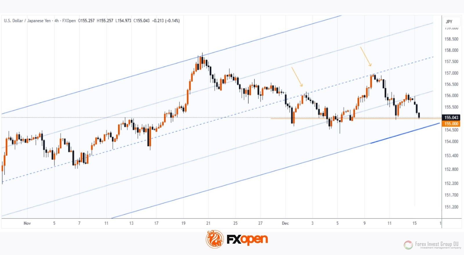 Учитывая сказанное выше, допустимо предположить, что рыночные настроения, связанные с ожиданиями ужесточения денежно-кредитной политики, могут привести к тому, что блок поддержек от нижней границы канала и ключевого уровня 155.00 будет пробит и сменит роль на сопротивление, а курс USD/JPY откроет себе дорогу к ключевой поддержке 150 иен за доллар.