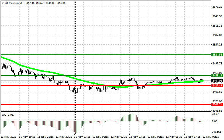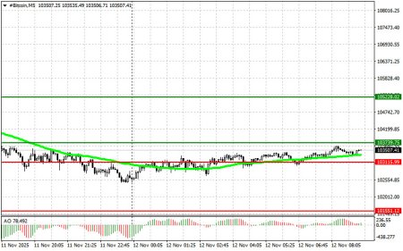 Энтузиазм покупателей биткоина быстро закончился. После покупок, который прошли в прошлые выходные, биткоин и эфир каждый день раз за разом теряют позиции. По всей видимости новых позитивных драйверов нет, так что и покупатели не торопятся возвращаться в рынок.Потенциальное решение Федеральной резервной системы США об очередном снижении процентной ставки в декабре остается главным позитивным катализатором для криптотрейдеров. Еще до прошлого заседания ФРС многие надеялись на снижение ставки в конце года, однако совсем недавно председатель ФРС Джером Пауэлл дал понять, что дальнейшее смягчение политики — это ещё не решенный вопрос. Вчера в СМИ и вовсе появилась информация о том, что в Центробанке США разногласия по поводу снижения ставки в декабре лишь усилились, что ставит трейдеров криптовалютами куда более неопределенное положение. Напомню, что решения Федеральной резервной системы оказывают непосредственное влияние на рисковые активы, в число которых входят и криптовалюты. Более жесткая денежно-кредитная политика обычно приводит к оттоку капитала из криптовалютного сектора, в то время как смягчение политики, напротив, способствует притоку средств. Усиление разногласий в ФРС повышает сложность прогнозирования дальнейших действий регулятора, что создает неблагоприятную среду для принятия инвестиционных решений. Что касается внутридневной стратегии на криптовалютном рынке, то действовать дальше буду, также опираясь на любые крупные просадки биткоина и эфира в расчете на продолжение развития бычьего рынка в среднесрочной перспективе, который никуда не делся. Что касается краткосрочной торговли, то стратегия и условия описаны ниже.Bitcoin Сценарий на покупку Сценарий №1: покупать биткоин сегодня буду при достижении точки входа в районе $103 700 с целью роста к уровню $105 200. В районе $105 200 буду выходить из покупок и продавать сразу на отскок. Перед покупкой на пробой нужно убедиться в том, что 50-дневная средняя скользящая находится ниже текущей цены, а индикатор Awesome находится в зоне выше нуля. Сценарий №2: покупать биткоин можно от нижней границы $103 100 при отсутствии рыночной реакции на ее пробой в обратную сторону к уровням $103 700 и $105 200.Сценарий на продажу Сценарий №1: продавать биткоин сегодня буду при достижении точки входа в районе $103 100 с целью падения к уровню $101 500. В районе $101 500 буду выходить из продаж и покупать сразу на отскок. Перед продажей на пробой нужно убедиться в том, что 50-дневная средняя скользящая находится выше текущей цены, а индикатор Awesome находится в зоне ниже нуля. Сценарий №2: продавать биткоин можно от верхней границы $103 700 при отсутствии рыночной реакции на ее пробой в обратную сторону к уровням $103 100 и $101 500.Ethereum Сценарий на покупкуСценарий №1: покупать эфир сегодня буду при достижении точки входа в районе $3459 с целью роста к уровню $3524. В районе $3524 буду выходить из покупок и продавать сразу на отскок. Перед покупкой на пробой нужно убедиться в том, что 50-дневная средняя скользящая находится ниже текущей цены, а индикатор Awesome находится в зоне выше нуля. Сценарий №2: покупать эфир можно от нижней границы $3427 при отсутствии рыночной реакции на ее пробой в обратную сторону к уровням $3459 и $3524.Сценарий на продажуСценарий №1: продавать эфир сегодня буду при достижении точки входа в районе $3427 с целью паден