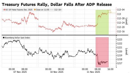 Действительно, отключение правительства сделало торгующих на международном валютном рынке инвесторов менее рискованными. Изменчивость котировок инструментов упала, а вместе с ней вырос спрос на гринбэк как доходный актив в операциях carry trade. Эффективность игры на разнице с участием «американца», с одной стороны, и иены или франка, с другой, превосходила другие стратегии. Если лишить доллар США такого козыря, котировки EUR/USD рванут на север. Вместе с тем индекс USD довольно спокойно отреагировал на снижение недельной занятости в частном секторе от ADP и на пугающий прогноз Goldman Sachs о сокращении non-farm payrolls в октябре на 50 тыс. После таких известий шансы на снижение ставки по федеральным фондам на декабрьском заседании FOMC лишь незначительно выросли, а доходность казначейских облигаций отступила. Динамика казначейских облигаций и доллара США