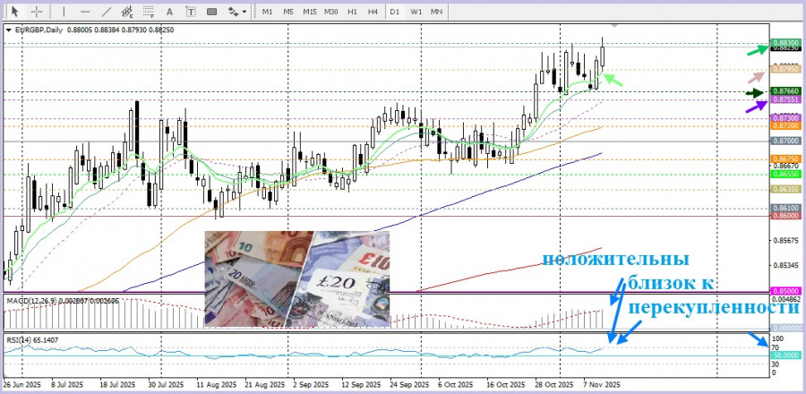 В среду евро продолжил своё укрепление по отношению к британскому фунту на фоне общего ослабления фунта стерлингов, вызванного обострением политической напряженности внутри Лейбористской партии Великобритании и спекуляциями относительно руководства премьер-министра Кира Стармера. Эти события усилили неопределенность на рынке в преддверии ежегодного бюджета, намеченного на конец текущего месяца.