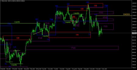 Торговые рекомендации по Биткоину(Bitcoin) на 13 ноября по системе ICT.