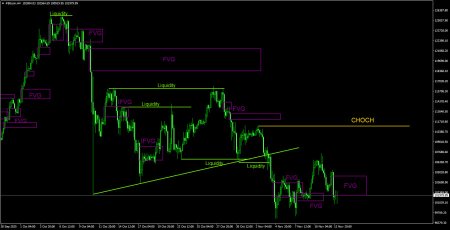 Торговые рекомендации по Биткоину(Bitcoin) на 12 ноября по системе ICT.